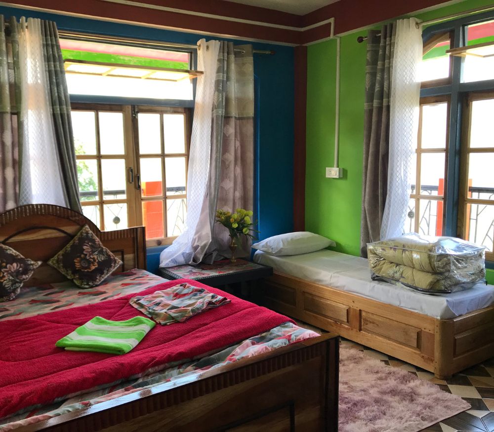 Wake up to the majestic beauty of the Kanchanjunga peaks from our spacious Triple Room with Mountain View. Designed to accommodate up to three guests